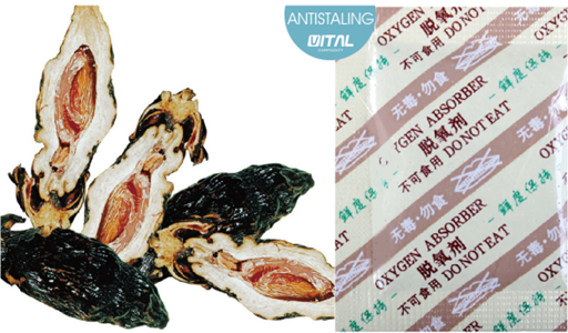 1.脫氧 通過持續(xù)吸收檳榔包裝內的氧氣,使包裝袋內的氧氣濃度始終維持在0.1%以下的相對無氧狀態(tài),有效的抑制霉菌和好氧性細菌的生長,延長產品的貨架期